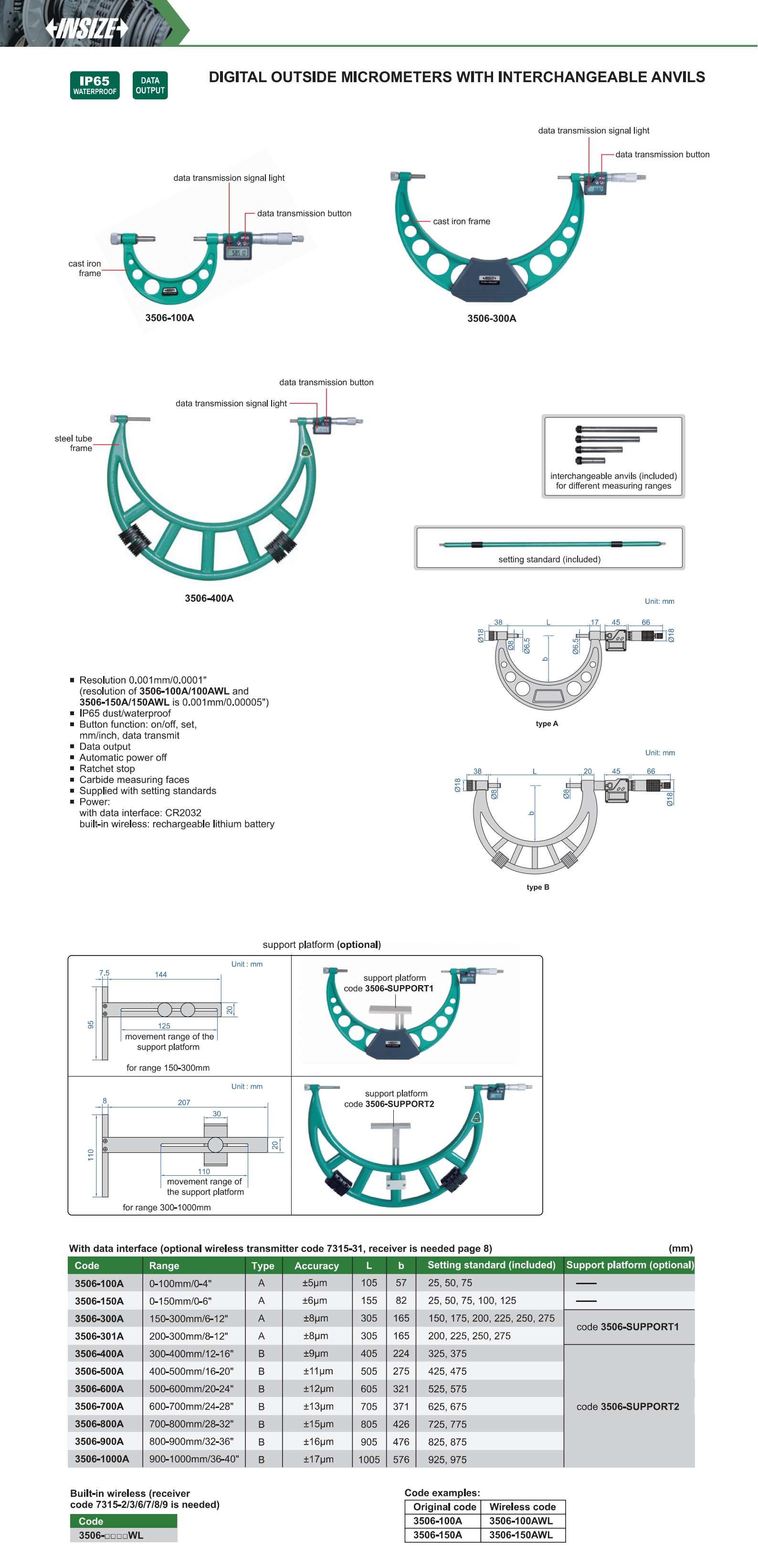 Digital Outside Micrometers With Interchangeable Anvils